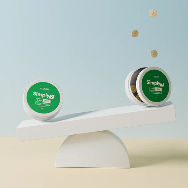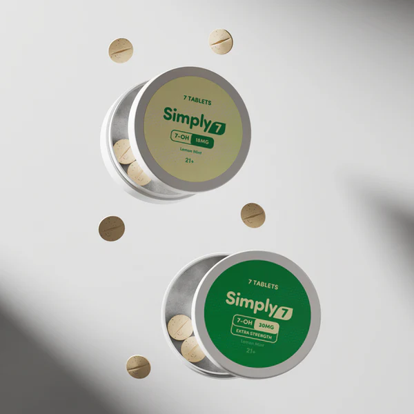 Simply7 Chewable Tablets (7-OH) in 18mg, 30mg, and 60mg strengths with 7CT, and 15CT quantity options. Choose your preferred strength and pack size using the dropdowns.